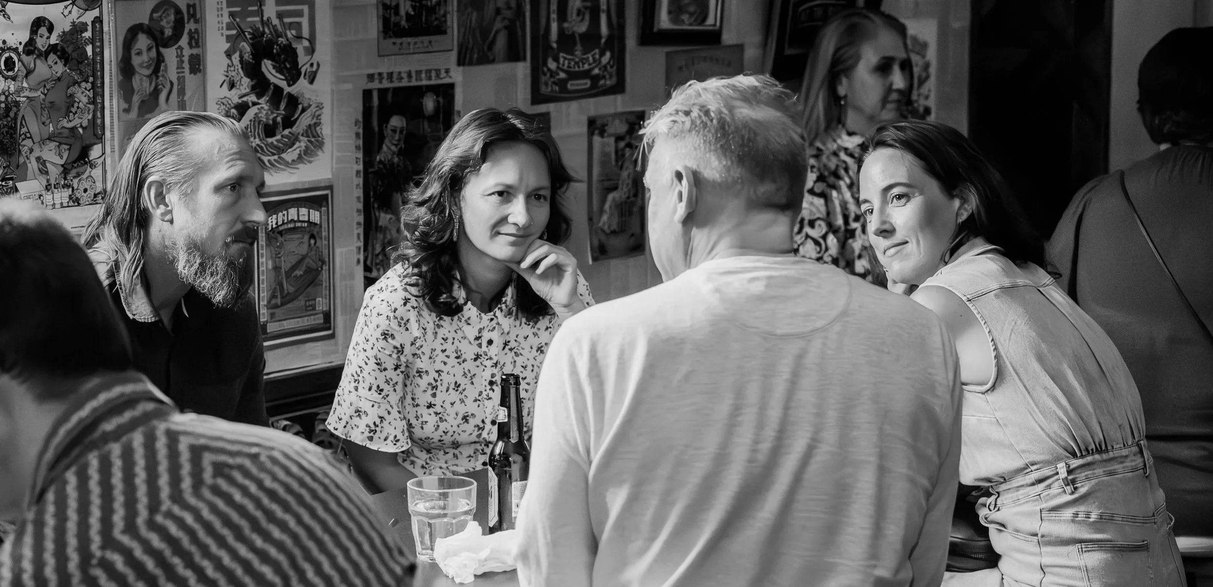 We wrap up the facilitated part of the evening by 9:30pm, but the venue remains open, so you’re welcome to stay and continue the conversation.